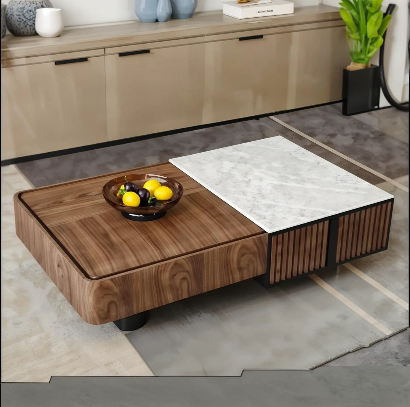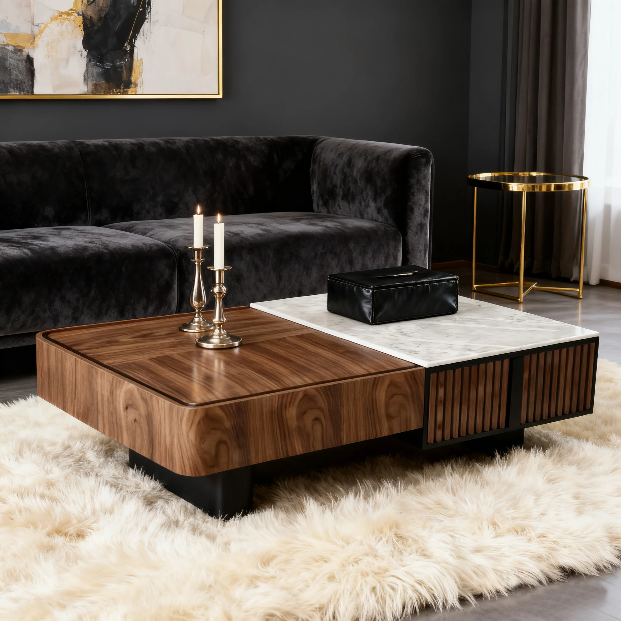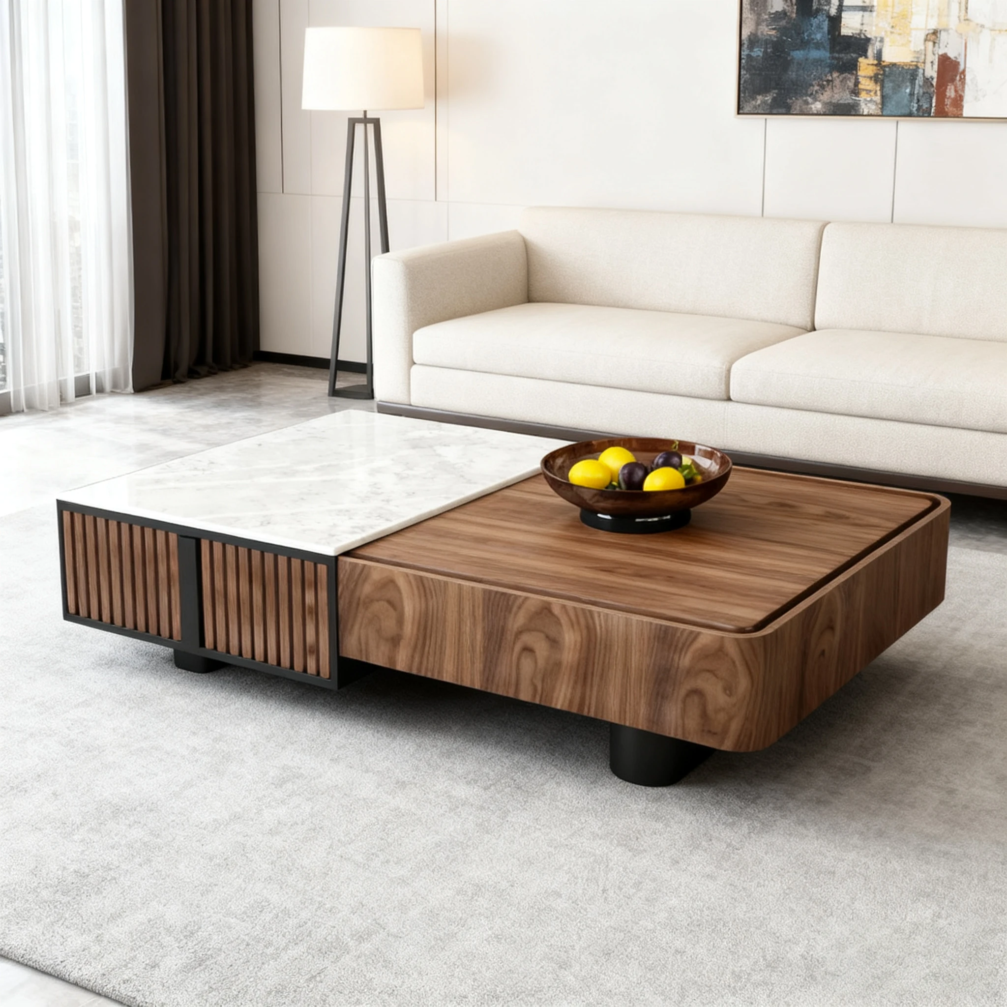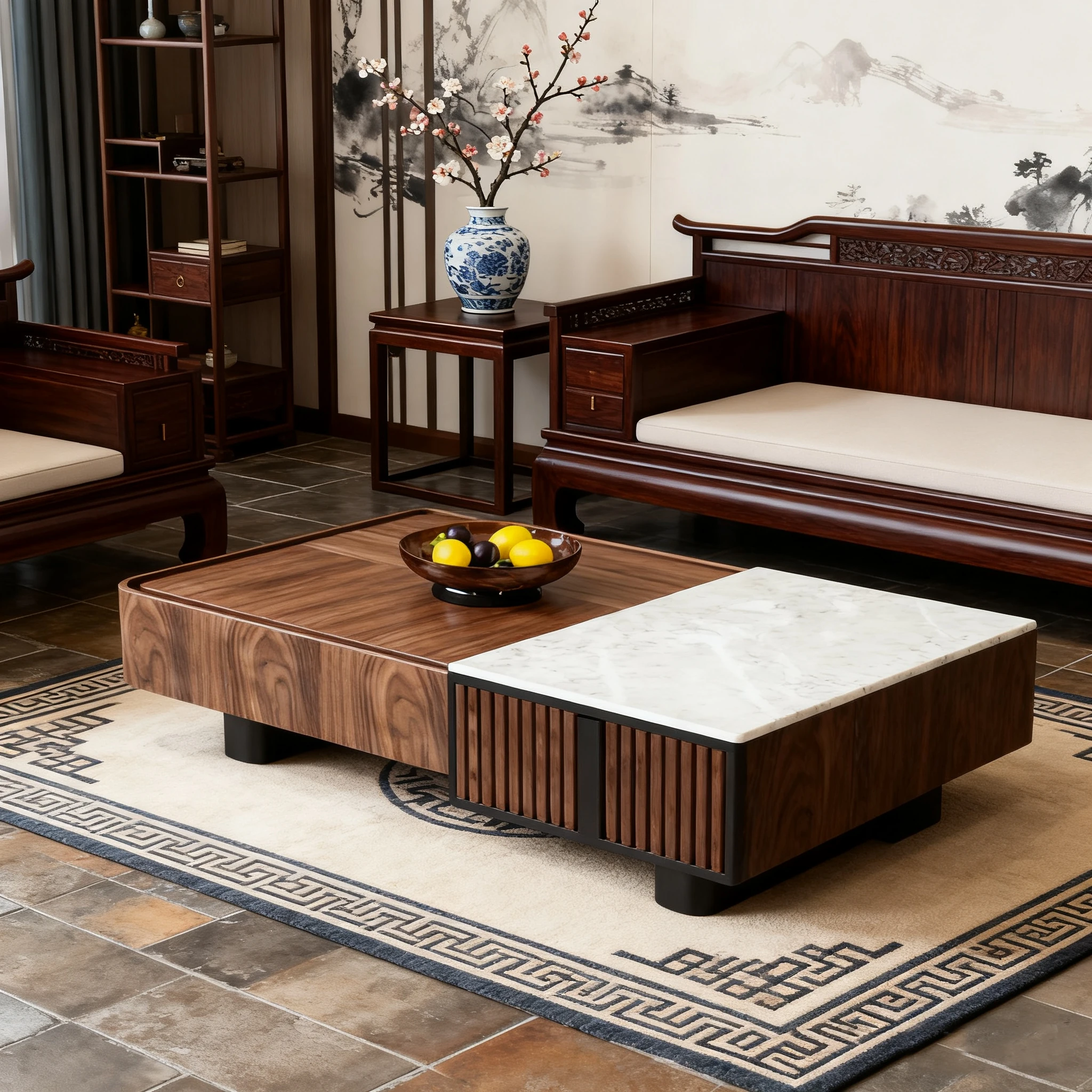 Elegant Solid Wood and Marble Coffee Table - 2025 New High-End Square Storage Side Table for Living Room, Perfect for Home Décor and Style