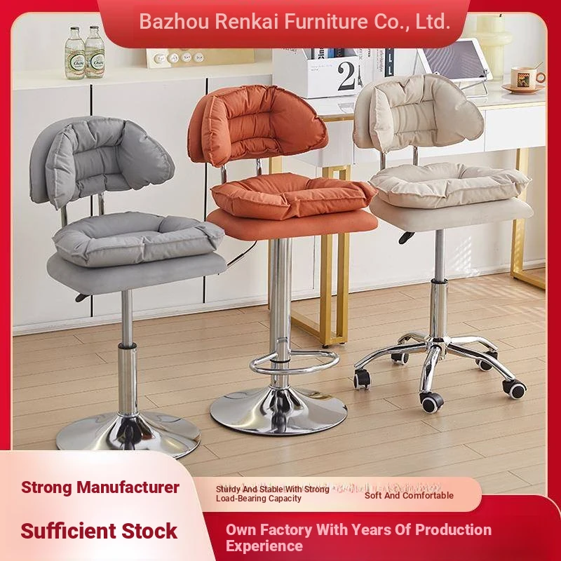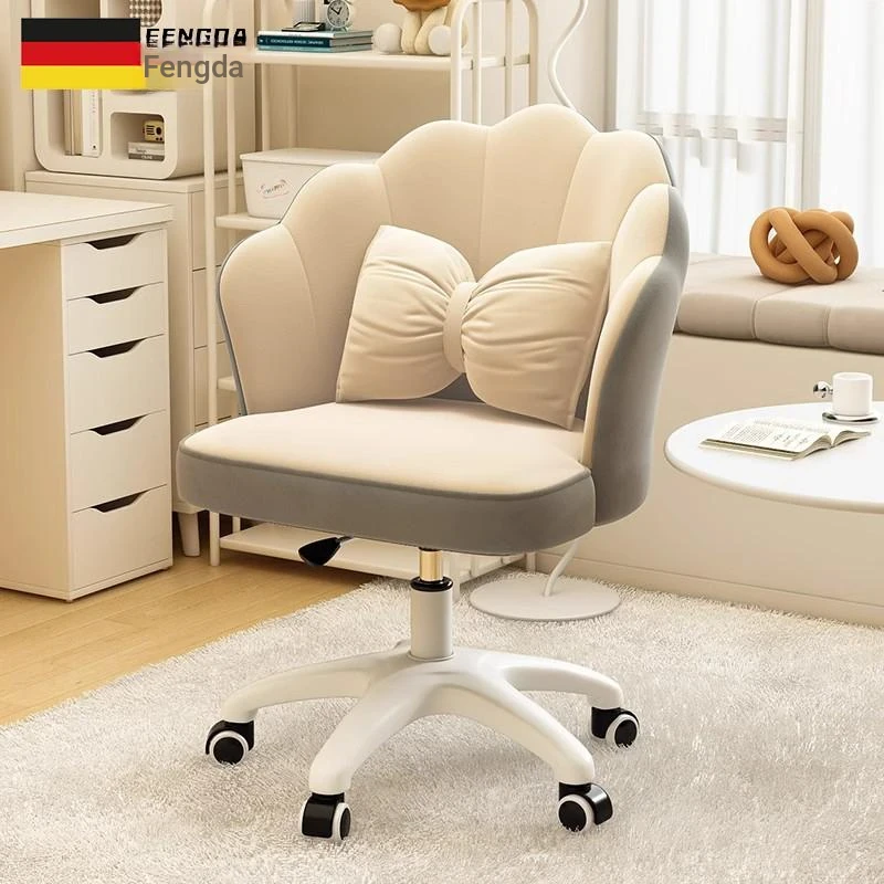 Japanese Imported Cream Makeup Vanity Chair with Adjustable Backrest - Perfect for Girls' Dressing Tables, Salon Use, and Nail Art, Featuring Smooth-Gliding Wheels.