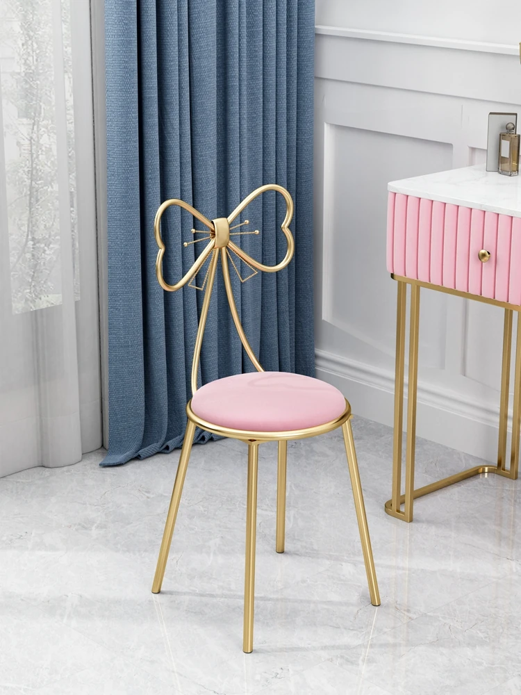 Modern Minimalist Vanity Stool with Butterfly Backrest - Trendy Makeup Chair for Girls' Bedrooms, Perfect for Nail Art and Beauty, Chic and Affordable Luxury
