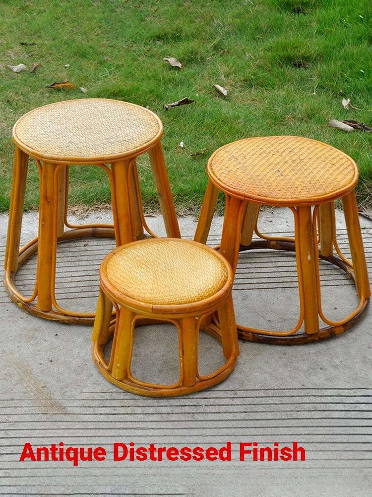 Chic Rattan Garden Stool - Stylish Trapezoidal Design, Versatile Bamboo Weave Small Round Bench, Perfect for Plants, Dining Tables, and as a Cozy Low Seat
