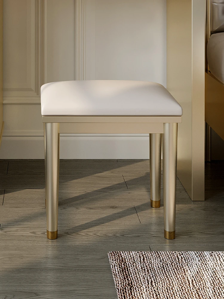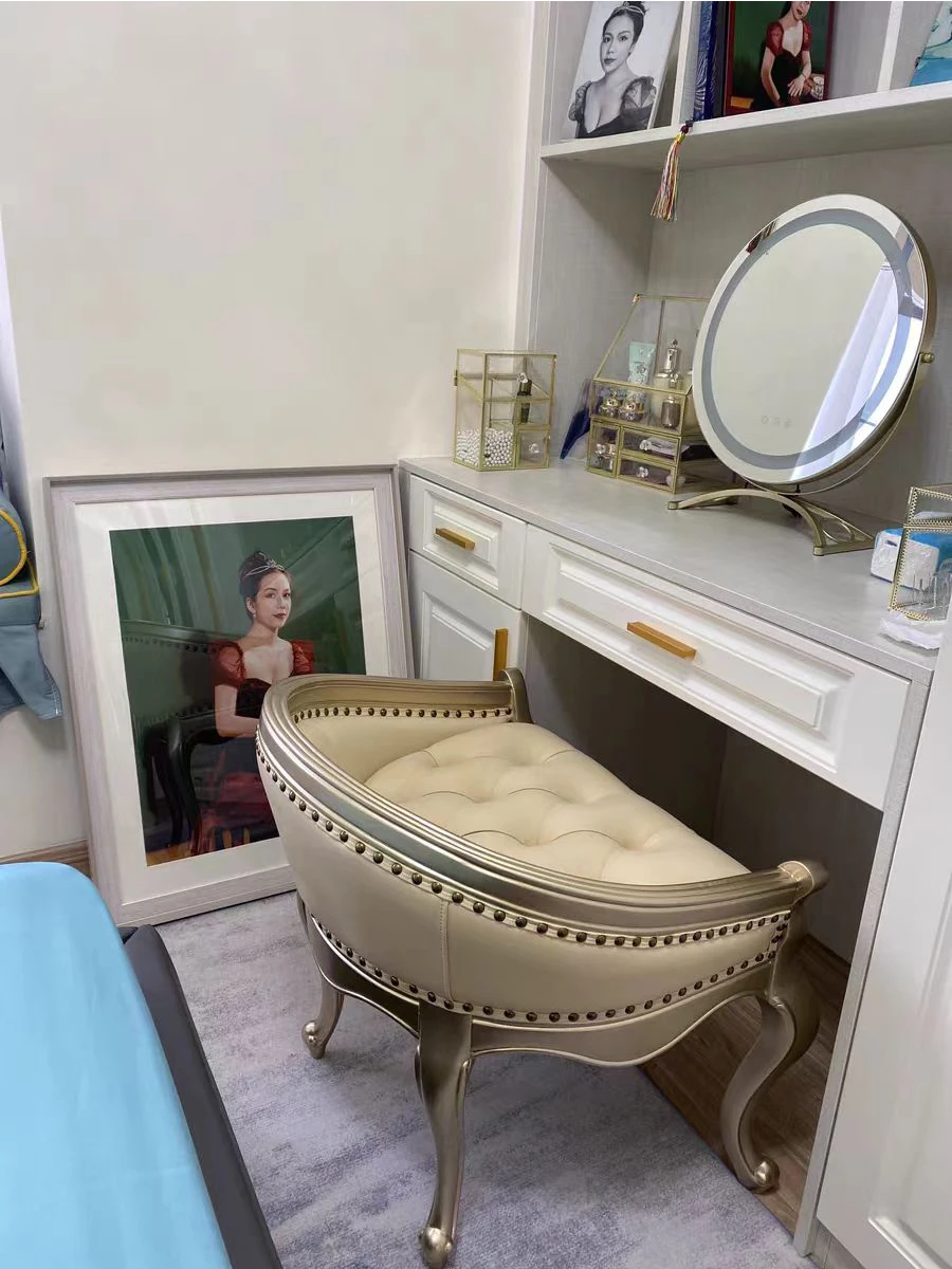 American Style Leather Makeup Stool - Solid Wood Vanity Chair for Bedroom, Elegant European Minimalist Design, Modern Leisure Chair with a Touch of French Luxury