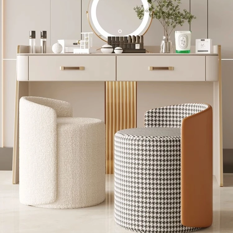 Stylish Makeup Vanity Chair for Girls - Chic Nordic Round Stool, Perfect for Bedrooms and Makeup Areas, Luxurious Feel, Ideal for Changing Shoes and Beauty Routine.