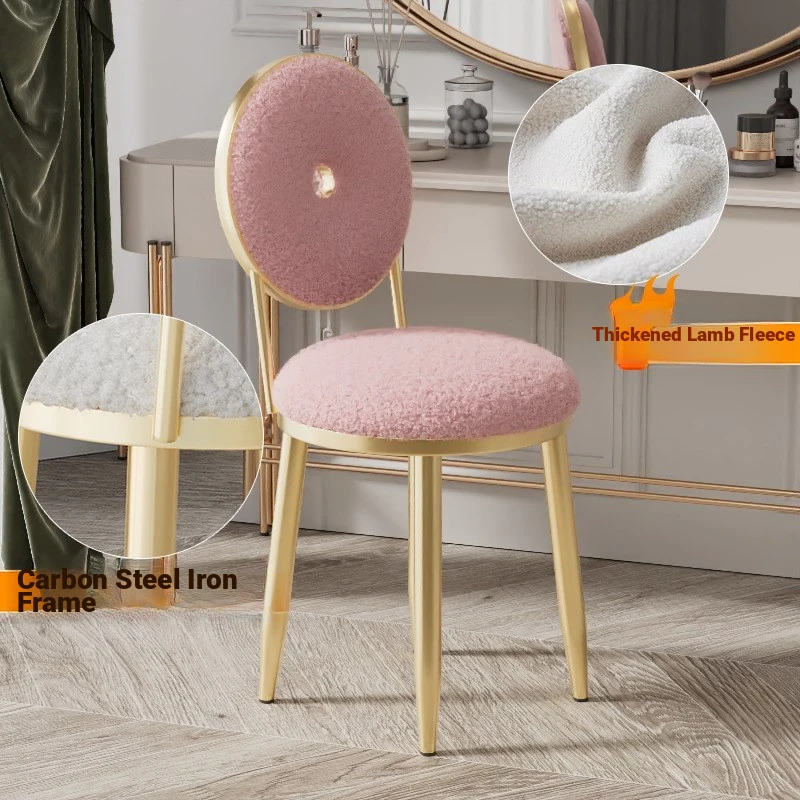 Stylish Round Backrest Stool - Trendy Plush Lambswool Donut Chair for Girls' Bedroom Vanity - Perfect for Makeup and Relaxation