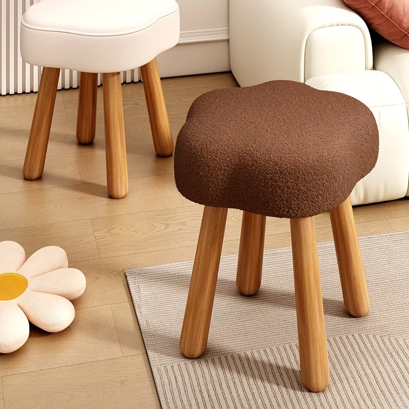 Nordic Solid Wood Fuzzy Cloud Makeup Stool - Cute & Minimalist Design for Girls' Bedrooms, Perfect as a Makeup Chair or Shoe Bench for Home and Living Room