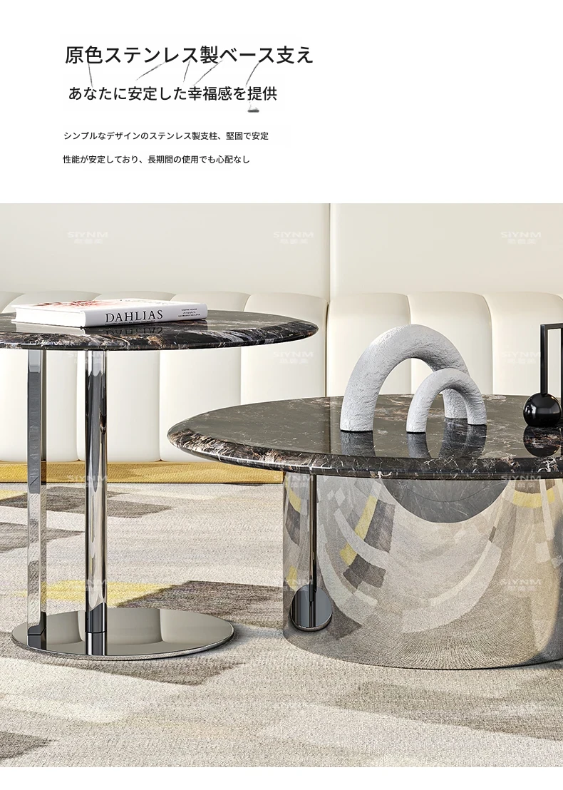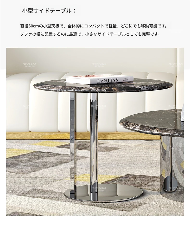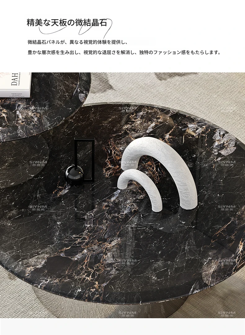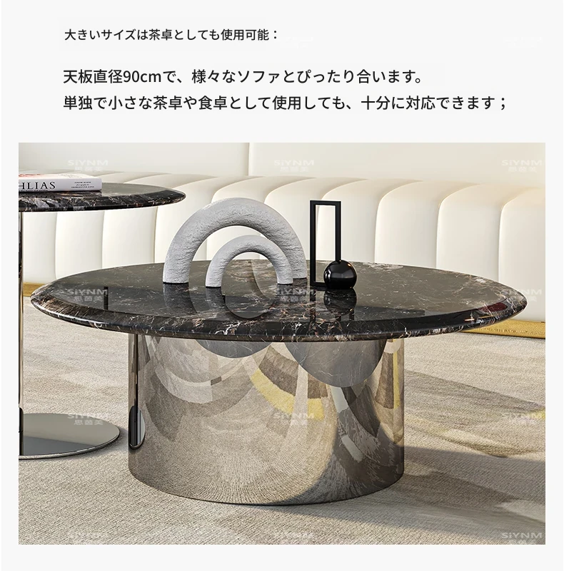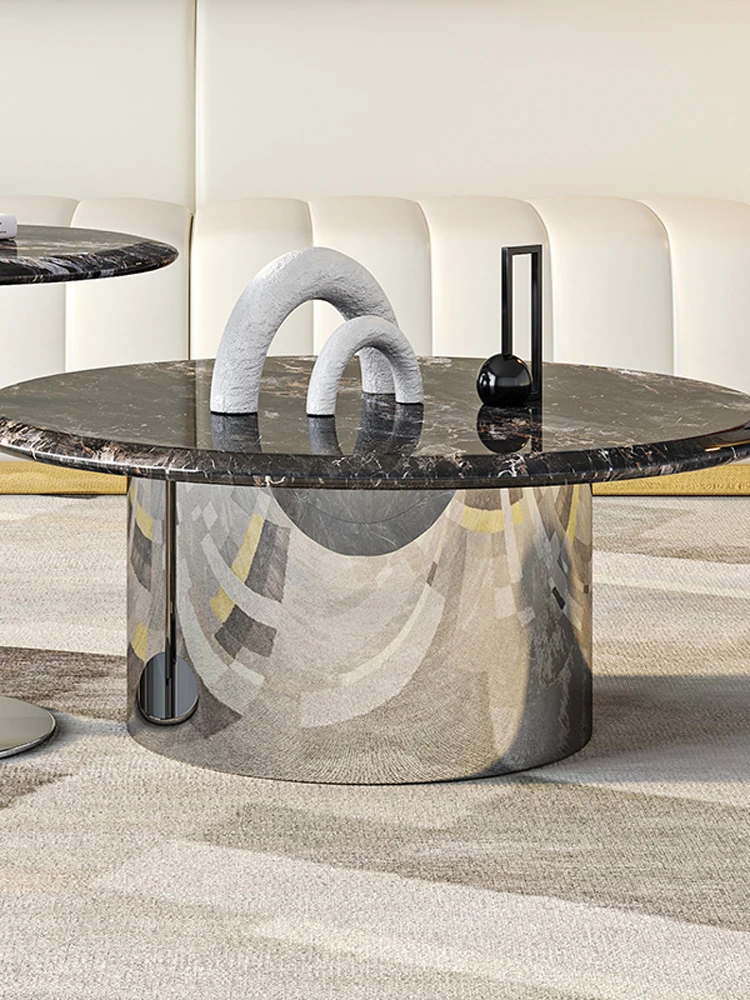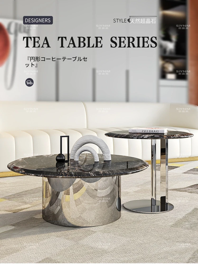 イタリアンラグジュアリー・ミニマリストデザインのマイクロクリスタル丸型コーヒーテーブル|モダンで洗練されたリビング空間にぴったりの高級テーブルサイズバリエーション!