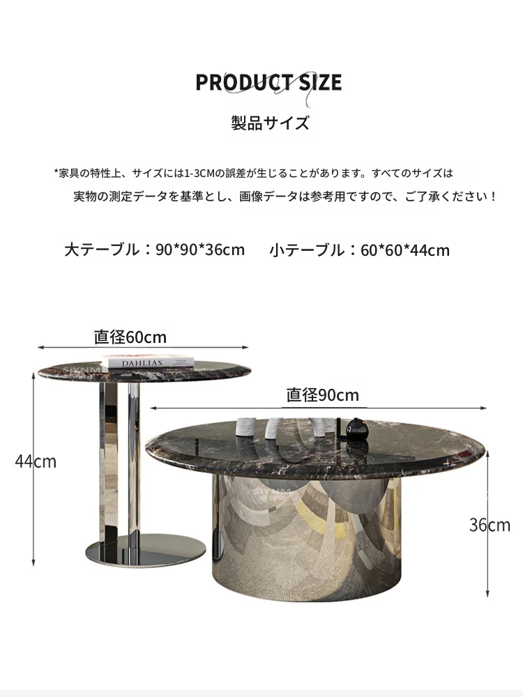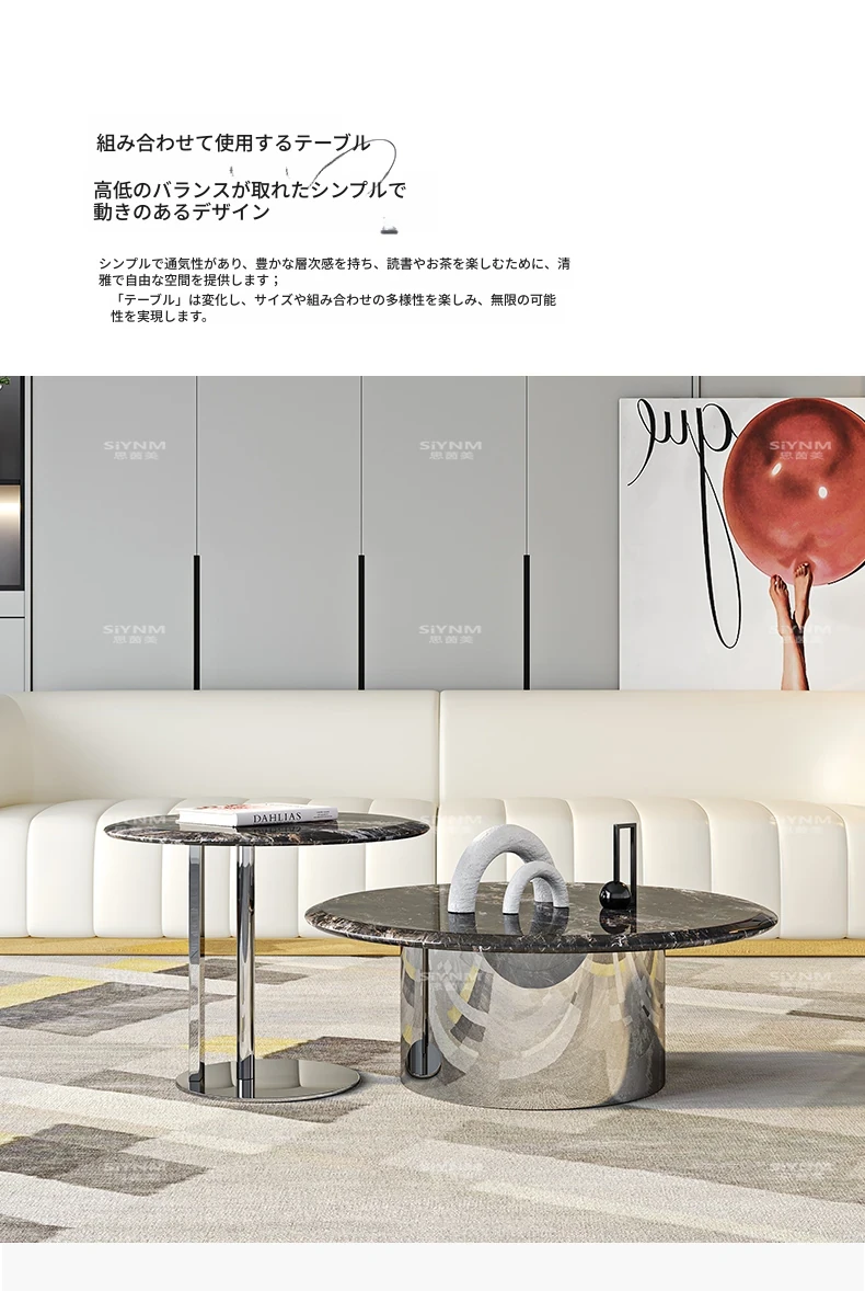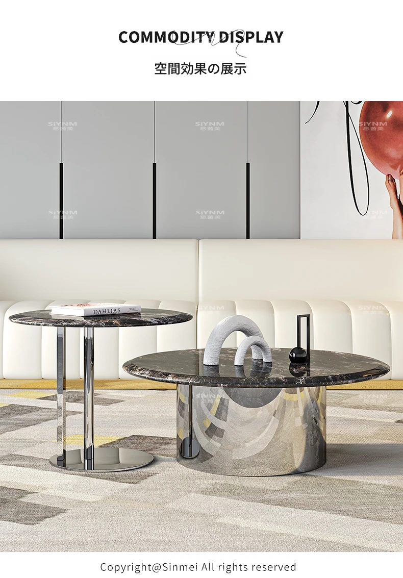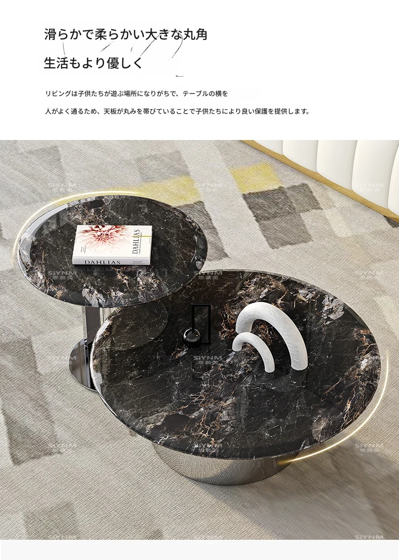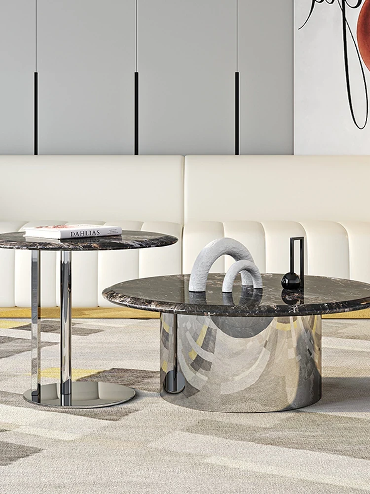 イタリアンラグジュアリー・ミニマリストデザインのマイクロクリスタル丸型コーヒーテーブル|モダンで洗練されたリビング空間にぴったりの高級テーブルサイズバリエーション!