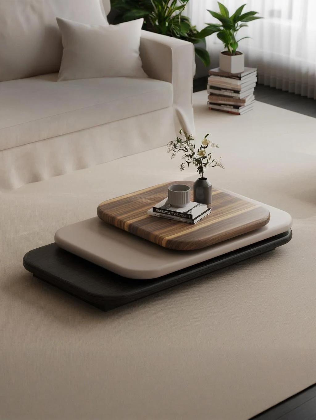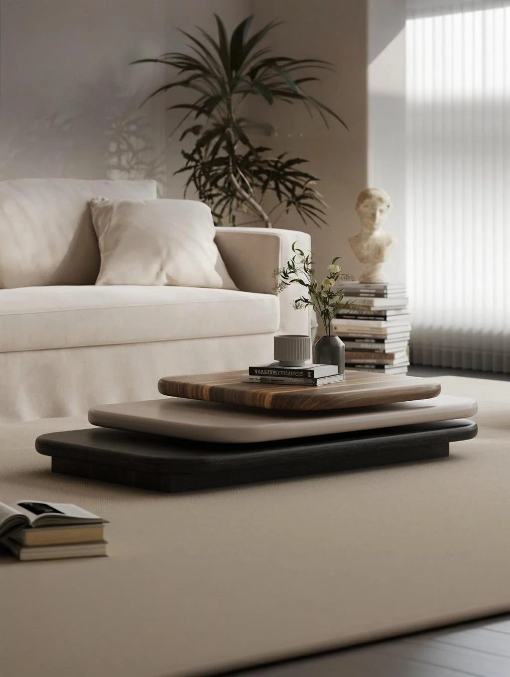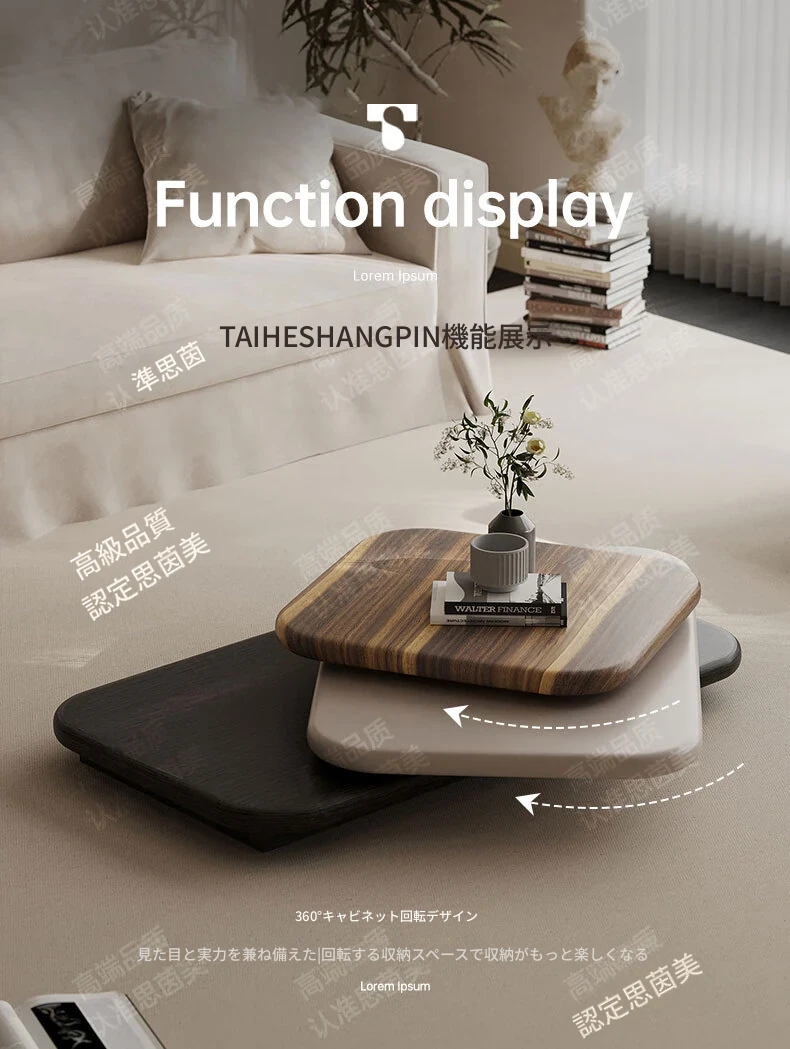 イタリアンミニマルデザインのローテーブル - おしゃれな小型リビング向け、軽やかな高級感を演出!回転式のクリエイティブデザインで、空間をスマートに演出します。